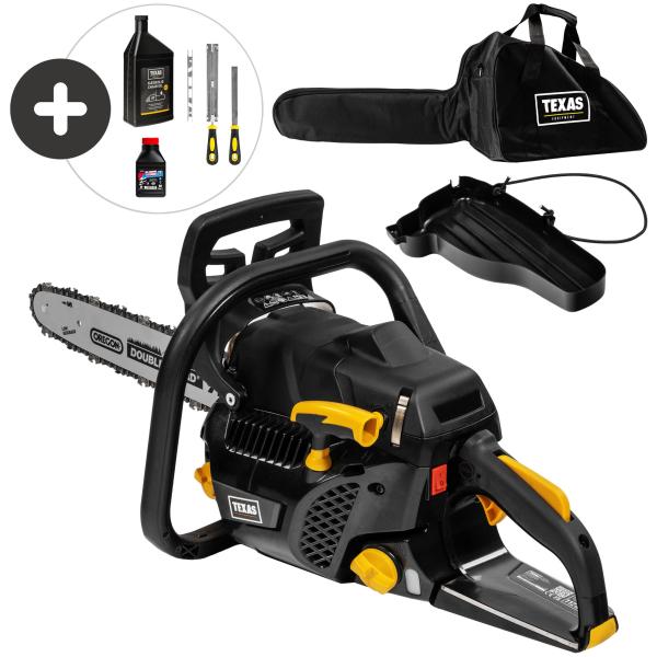 TEXAS´ XCS4200 kædesav har en god motor på 42 cc, et praktisk sværd på 16" (40 cm) og en kædehastighed på 23,1 m/s, og sammen giver det dig en effektiv arbejdsgang. Med en vægt på blot 5,5 kg, så får du i denne motor sav en meget let og kompakt maski, XCS4200 pakke.